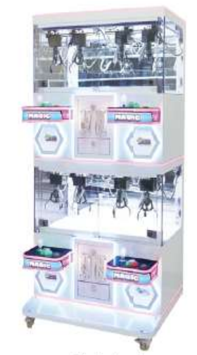 組み合わせ自在な筐体。クレーン、クリップ、カプセル払い出し、ショーケースの他にも